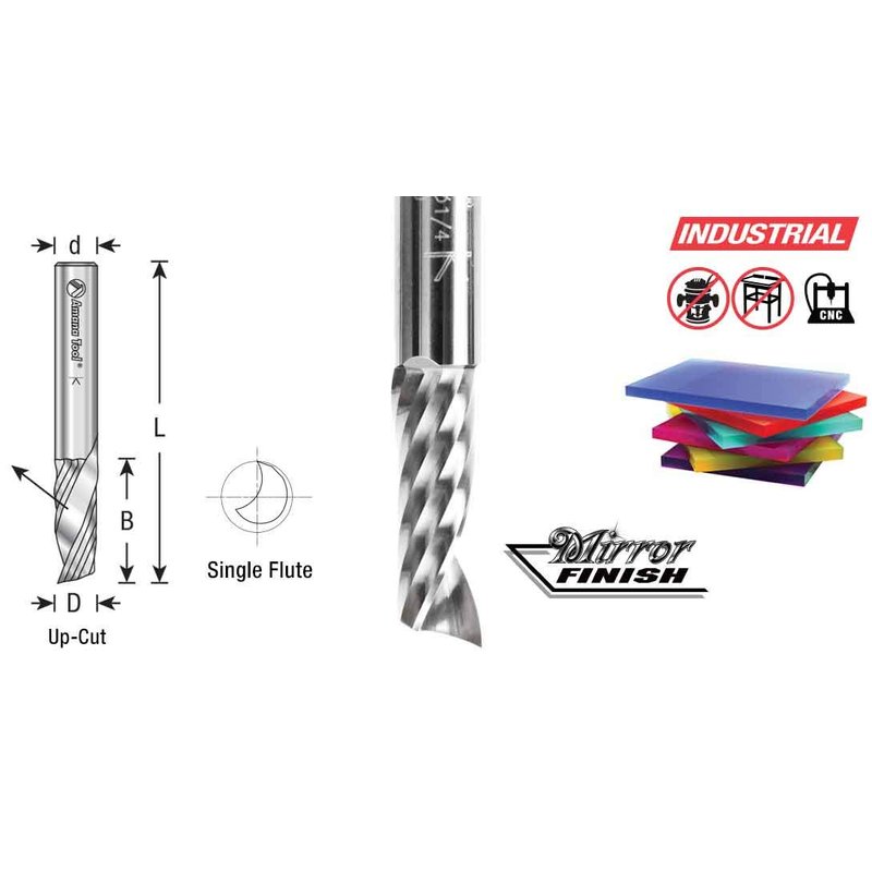 Amana Tool - 51418 Solid Carbide CNC Spiral 'O' Single Flute, Plastic Cutting 3/16 Dia x 1