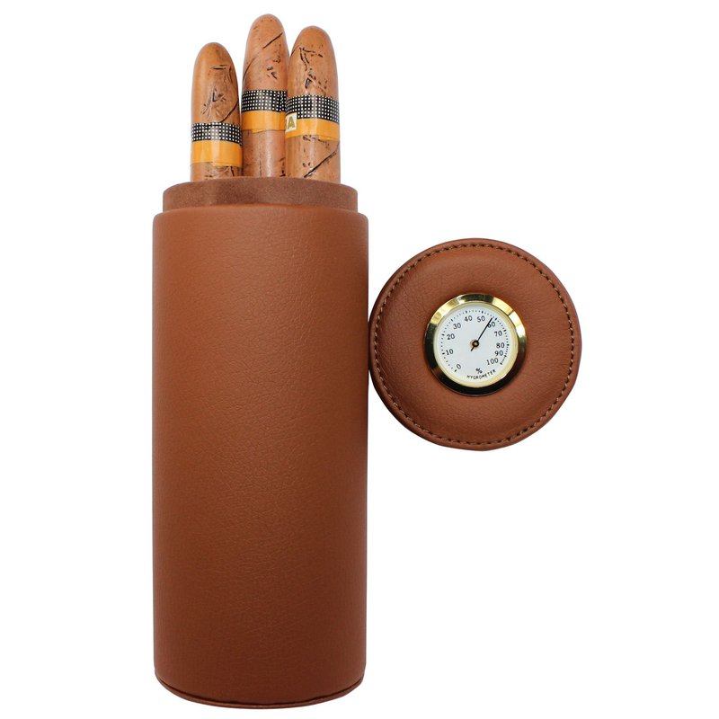 AMANCY Practical Travel 5 Cigar Humidor,Brown Leather Cedar Wood Lined Cigar jar, Portable Cigar Case with Humidifier