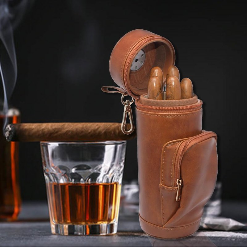 - Newly and Fashion design . Front pocket to store cutter and lighter Easily . Comfortably to carry anywhere with attached Sling. Monitor humidity at any time by exterior Hygrometer