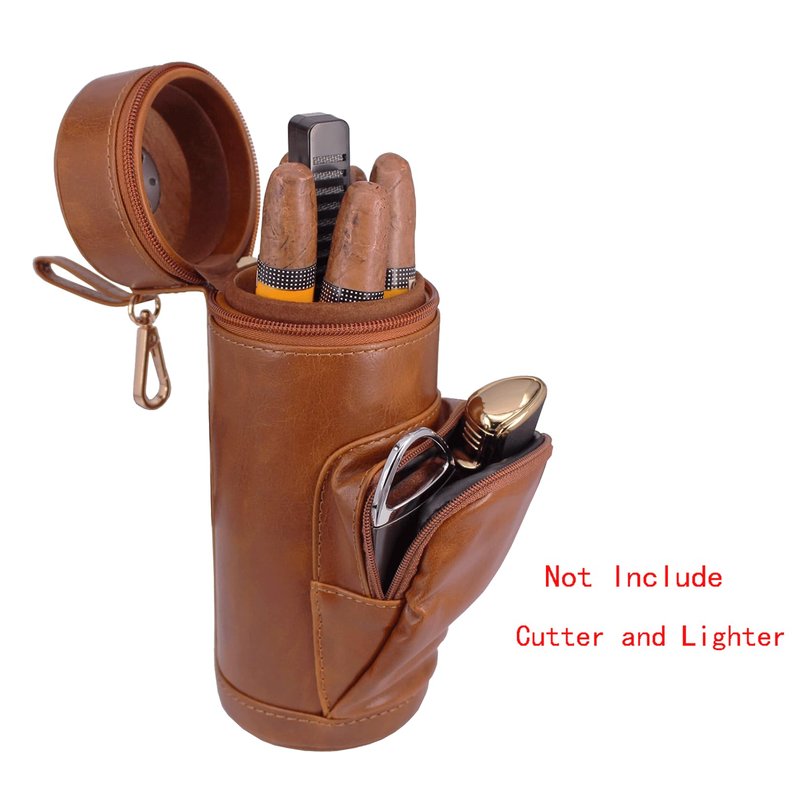 - Brown leather outside and cedar wood inside to keep cigars fresh. Attached Clip that will hook onto any belt, waistband, or pockets