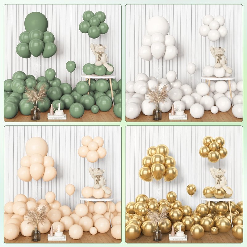 - Easy to Use- Our sage green balloon arch kit comes with balloon accessories which can help you create the perfect green balloon arch. You can make daisies balloons with flower clips. Hooks can help better secure balloons where you need! Design your sage green balloon arch by inflating the balloons with helium or air, then attach them with balloon strip or ribbon. And you also can use glue points to add small balloons to the garland.