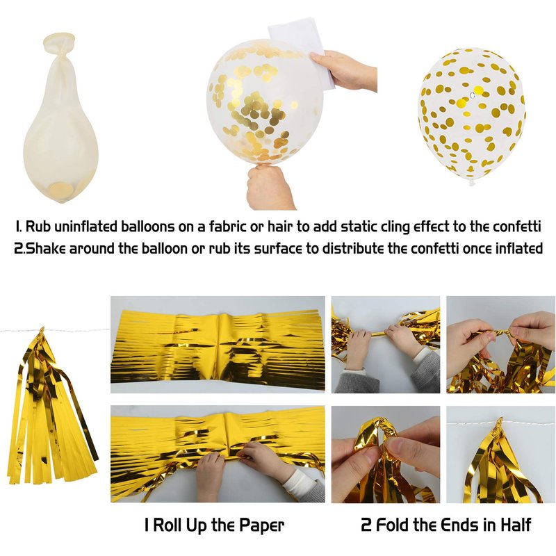 * For confetti balloons, after inflated, please rub gently with towel, wool, carpet, cloth to get static so that the confetti stick to the wall.