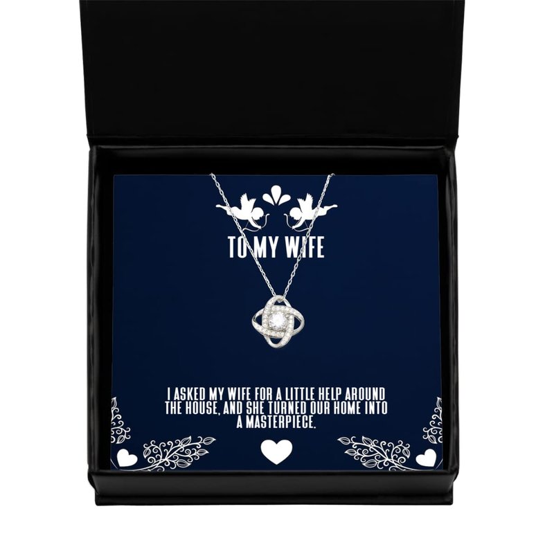 Amangny Reusable Wife Gifts, I asked my wife for a little help around The house, and she, Birthday Love Knot Silver Necklace for Wife, Present, Gift ideas, Anniversary, Christmas