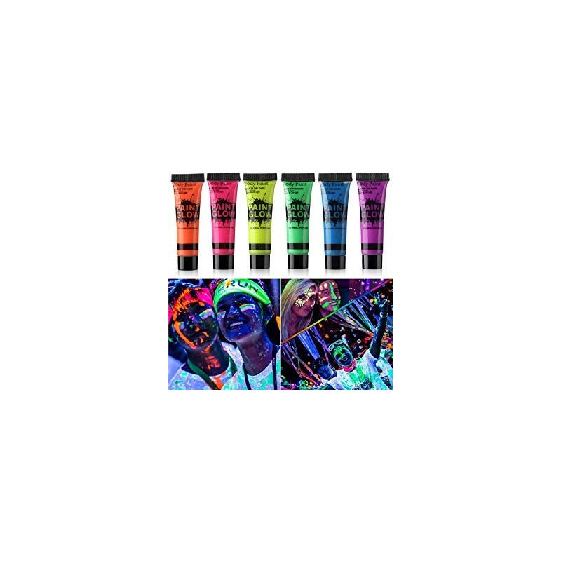 Amareu Glow in Dark Body Paint Body&Face Glow Backlight Neon Fluorescent 0.34oz Set of 6 Tubes