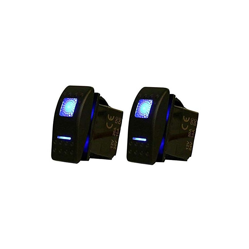 Amarine Made 2-Pack 12v 20 Amp Waterproof On-Off-On 2 Position Boat Marine DPDT 7 Pin Rocker Switch with 2 Led Lamps (Blue)