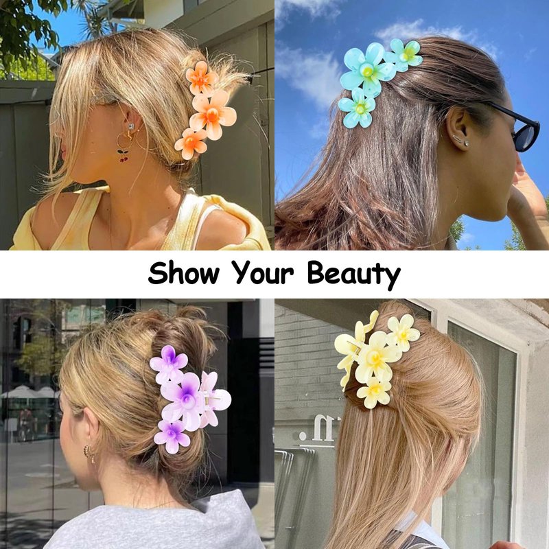 - Chic Design: The flower hair claws are designed in shape of 3 Plumeria flowers. Our hair clips looks like flowers that never wither and fall. Whether it's a ponytail, a bun or a shawl, the flower hair clip will be your go-to accessory for every outfit, make you looks more charming and attractive!