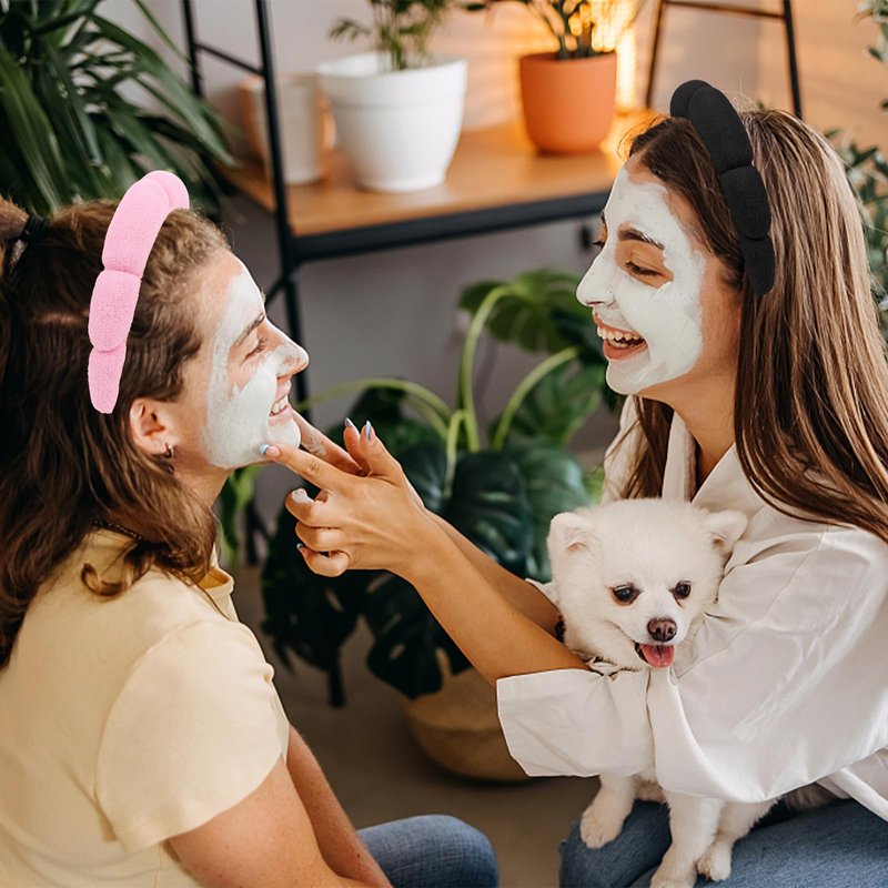 - Terry Cloth Spa Headbands:2 terry cloth spa headband in the package, in cute colors pink and black. With fine workmanship, the skincare headband is like a flower and like a cloud, soft, cute, unique and versatile.