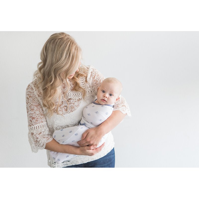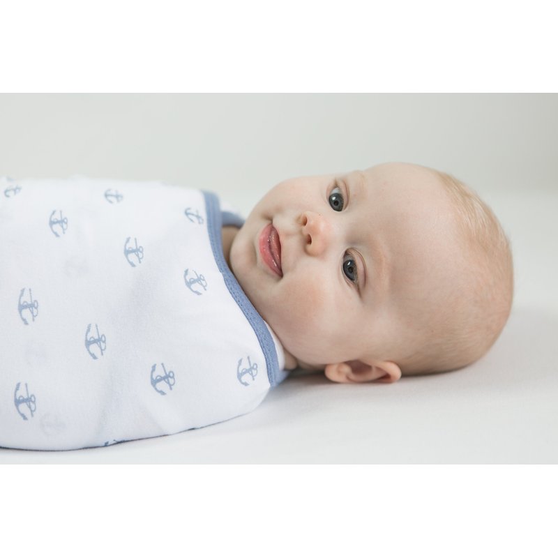 Amazing Baby Swaddle Blanket with Adjustable Wrap, Set of 3, Tiny Anchors, Stripes and Solid, Denim and Gray, Small