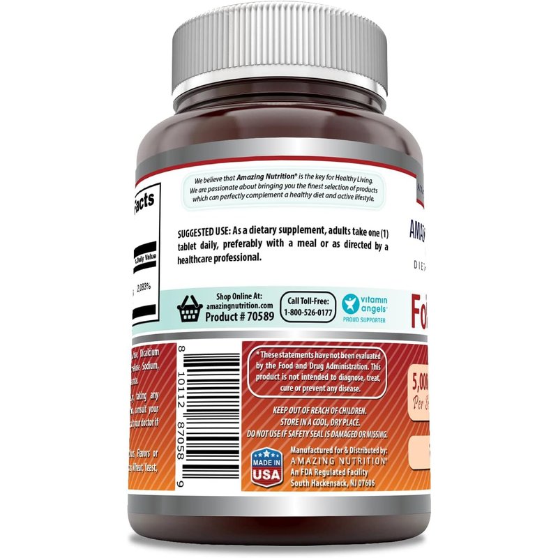 - Folic Acid 5000 Mcg Per Serving Supplement - 1 Tablet Per Serving, 120 Servings Per Bottle - Non-GMO, Gluten Free, Third Party Tested - Manufactured in accordance with GMP Standards - Proudly made in the USA with Guaranteed Purity & Potency