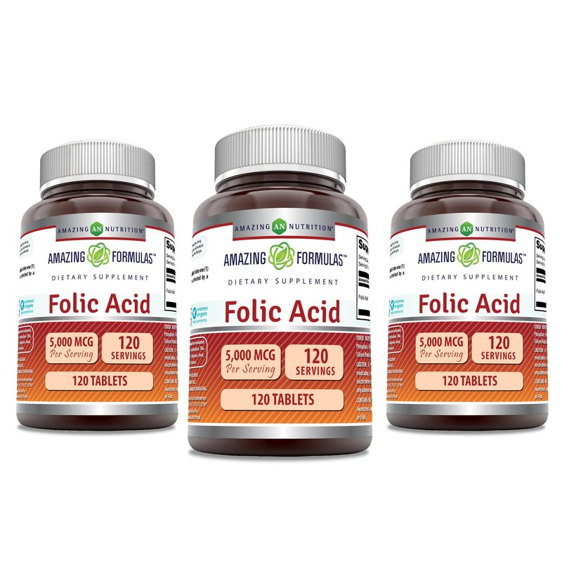Amazing Formulas Folic Acid Supplement | 5000 Mcg | 120 Tablets | Non-GMO | Gluten Free | Made in USA (3 Pack)