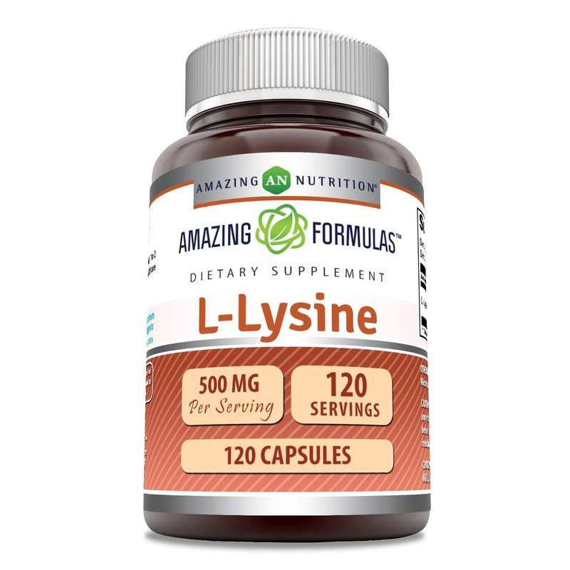 Amazing Formulas L-Lysine 500 mg 120 Capsules | Amino Acid Supplement | Non-GMO | Gluten Free | Made in USA