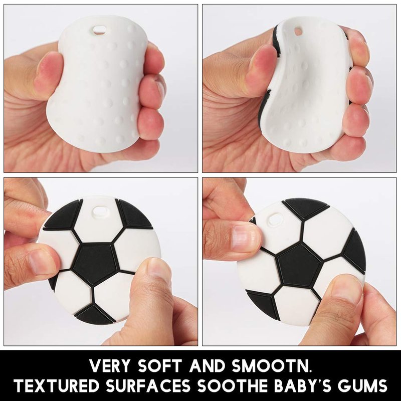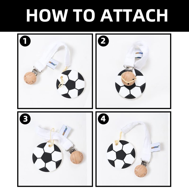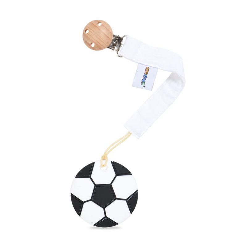 - Convenient: Our soccer teether is perfect size and easy-grasp design for baby to hold,pacifier holder is perfect length for clipping on baby clothes, blankets, toys, strollers, or car seats.