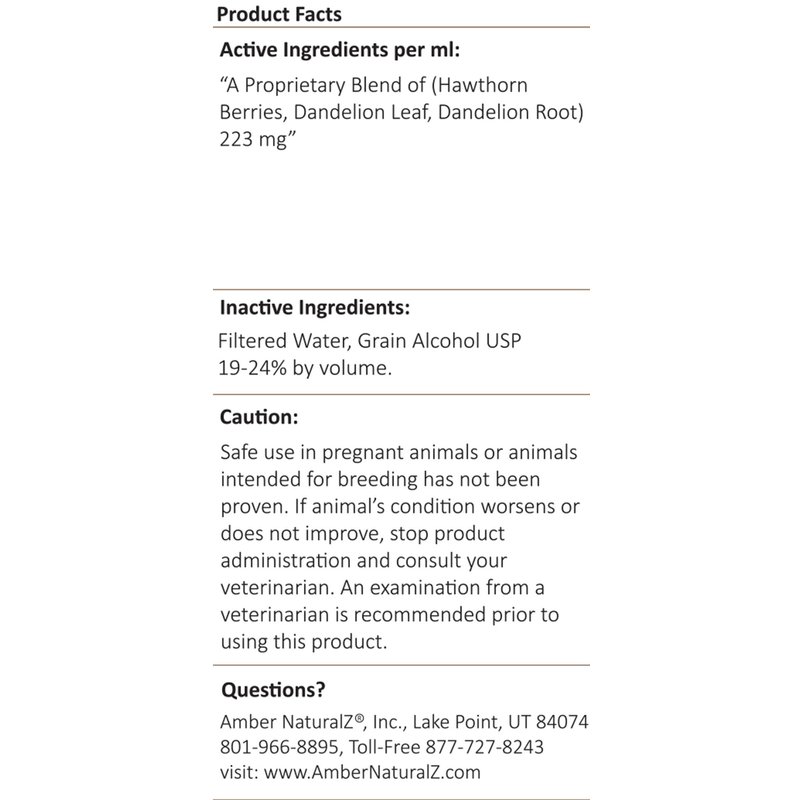 - Formulated Just For Pets: Amber NaturalZ hawthorn and dandelion herbal supplements are designed to support heart health in dogs, cats, birds, guinea pigs, and rabbits while also maintaining a normal fluid balance for optimal health so your pet can keep enjoying everyday activities.