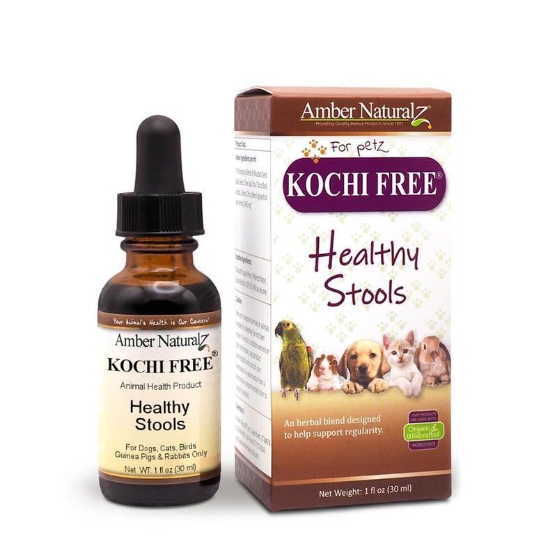 Amber NaturalZ Kochi Free Herbal Supplement for Dogs, Cats, Birds, Guinea Pigs, and Rabbits | Pet Herbal Supplement for Healthy Stool Support | 1 Fluid Ounce Glass Bottle | Manufactured in The USA