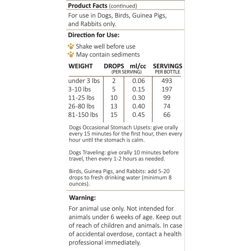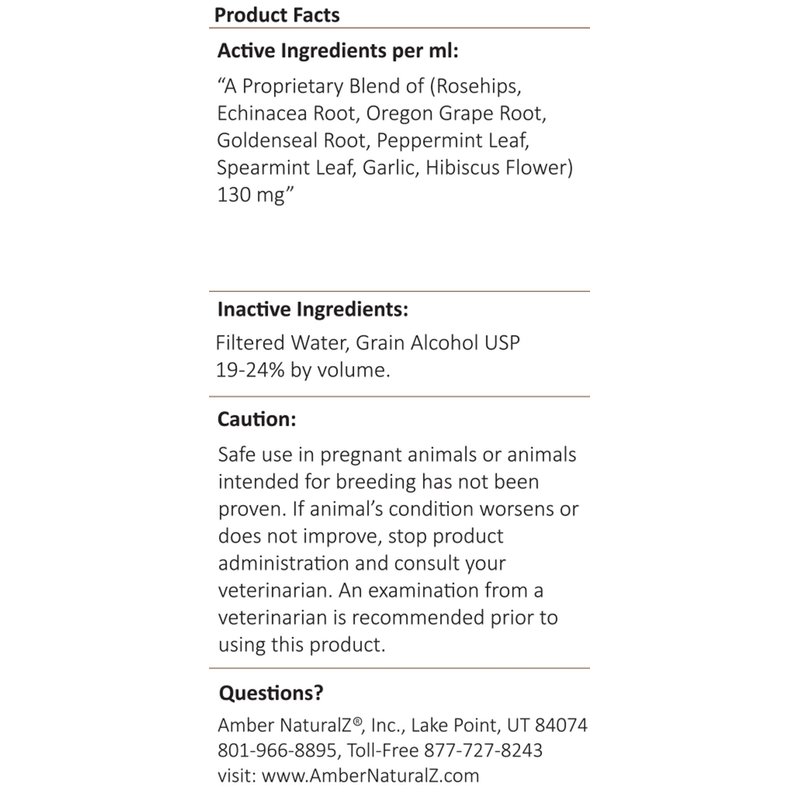 The Amber NaturalZ ProTummy herbal supplement for Dogs, Birds, Guinea Pigs, and Rabbits contains a proprietary blend of herbs that help with occasional stomach upsets due to food sensitivities or motion sickness during travel. This herbal pet supplement is designed to help your pet when they have an upset stomach so they can get back to their everyday activities such as running, playing, jumping, and traveling. For occasional stomach upset support in cats, try Amber NaturalZ Kitty DT. Plastics can cause harmful toxins and chemicals to leach into herbal extracts. ProTummy is safely bottled in one (1oz) sterile amber glass bottle and includes a convenient dropper tool for easy administration along with easy-to-follow instructions. Amber NaturalZ ProTummy Stomach Comfort is globally sourced and manufactured in the USA containing our proprietary blend of organic and wildcrafted herbs. These include Rosehips, Echinacea Root, Oregon Grape Root, Goldenseal Root, Peppermint Leaf, Spearmint Leaf, Garlic, and Hibiscus Flower.