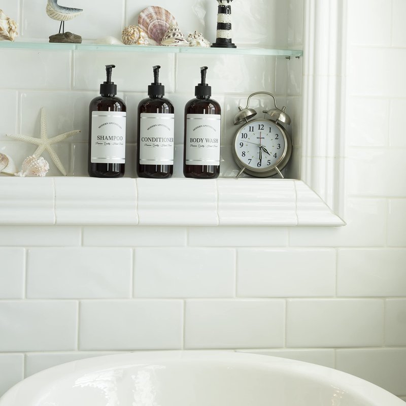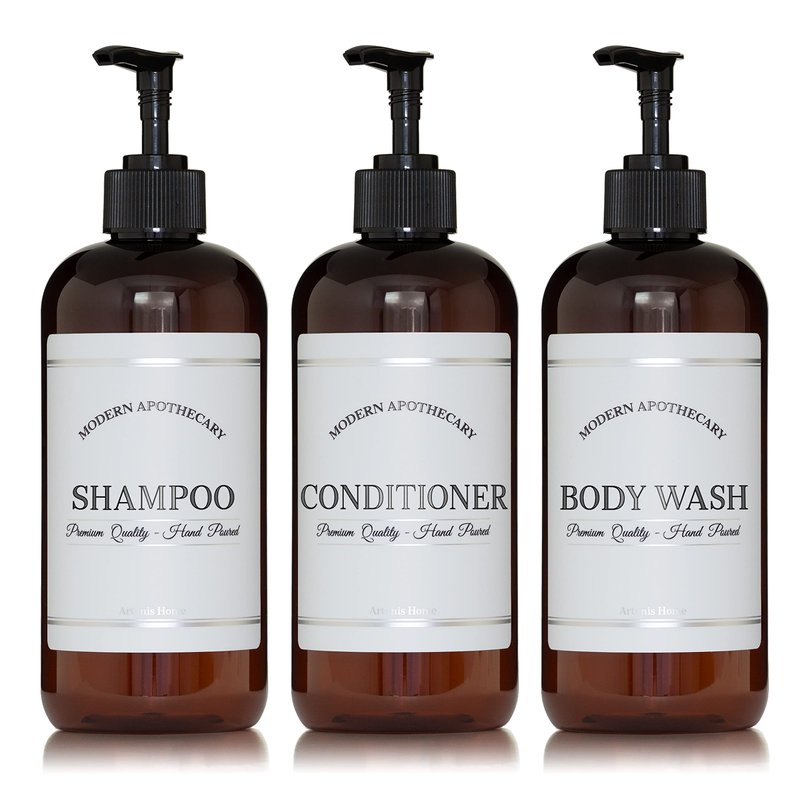 - Bring Style To Your Bathroom: Revel in the luxury of a well-organized shower. Refine your interior decor with these chic body wash, conditioner and shampoo dispenser bottles. Curate your whole home. Modern Apothecary bathroom bottles coordinate with additional matching titles for the sink, kitchen, office, and rentals. Classy, with a touch of retro flair