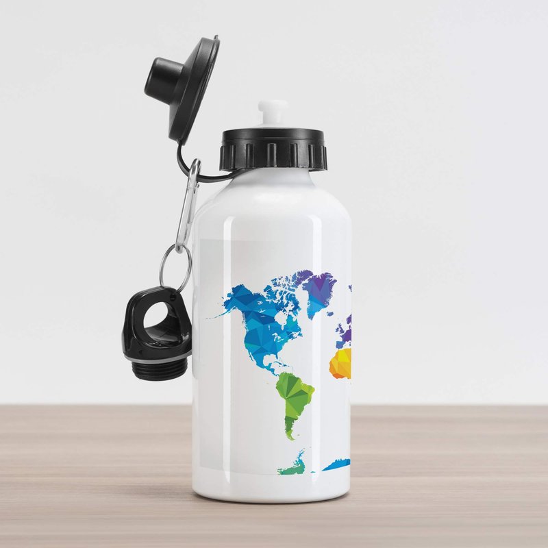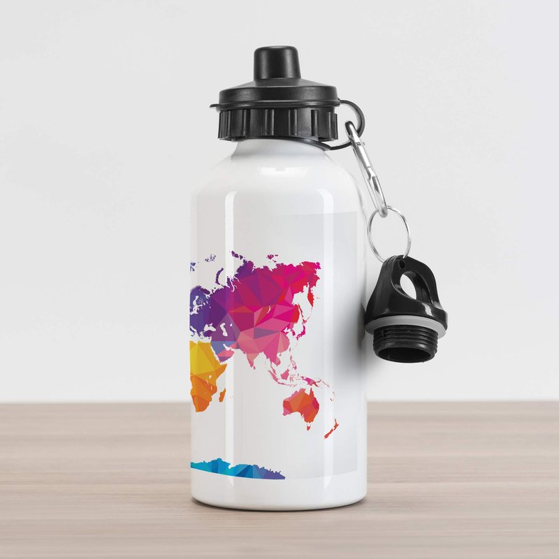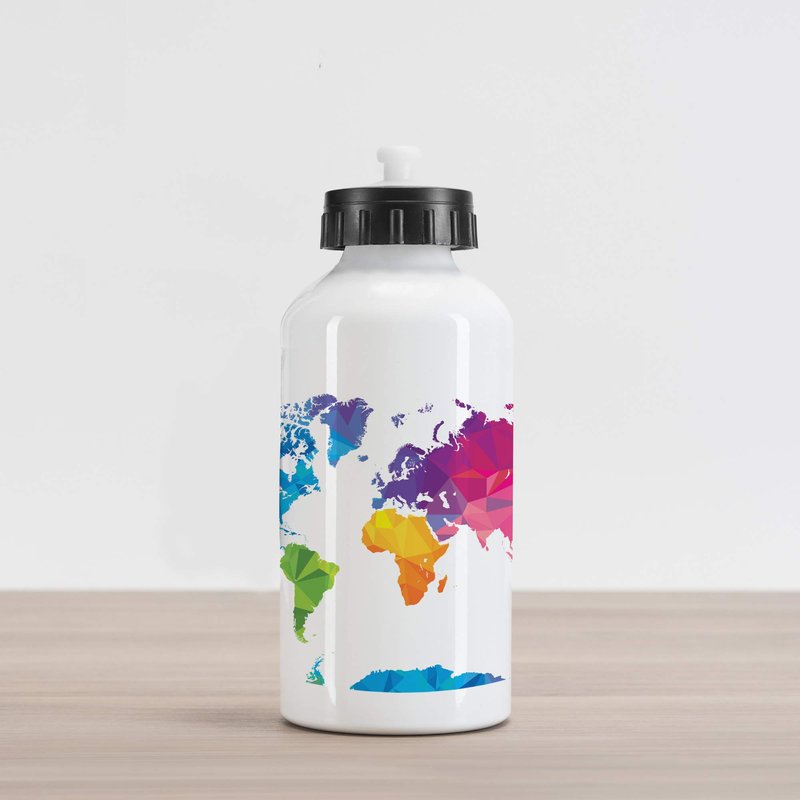 Ambesonne Map Aluminum Water Bottle, Low Poly Style Illustration of World Map Mosaic with Graded Rainbow Colors, Insulated Spill-Proof Travel Sports Water Bottle, 16.9 OZ, Magenta Blue
