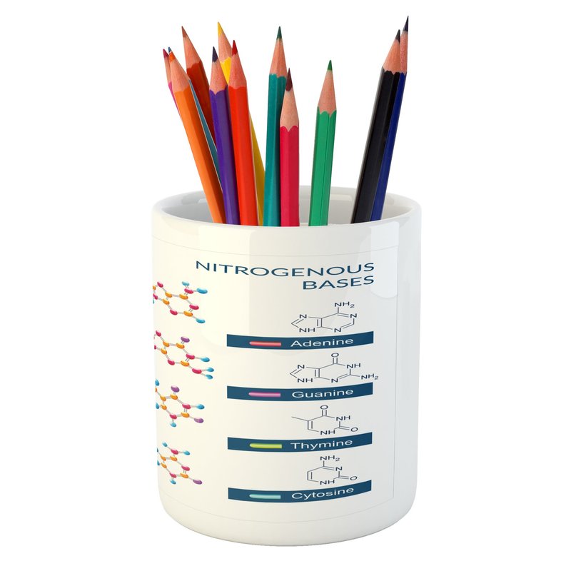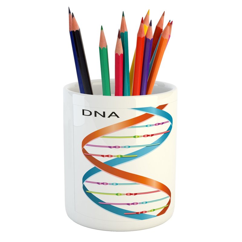 Ambesonne Science Pencil Pen Holder, DNA Bases Chemistry Biochemistry Biotechnology Science Spiral Genetic, Ceramic Pencil Holder for Desk Office Accessory, 3.6" X 3.2", White Blue