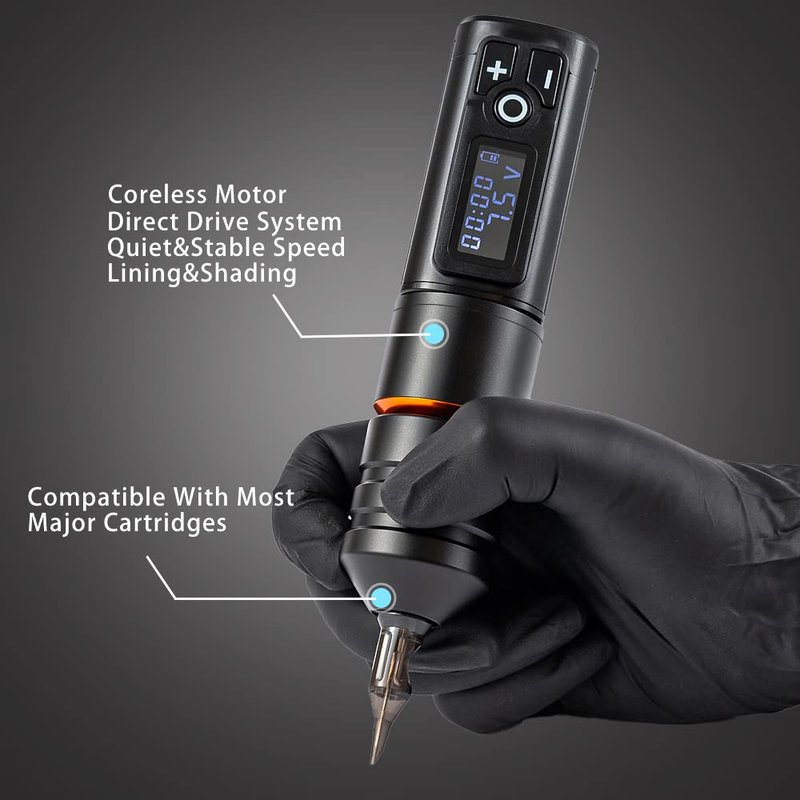 - High Quality Motor: Ambition tattoo pen built-in custom corless motor, 10V - 9000RPM. More powerful, low skin loss, fast coloring, no hot for long time working.