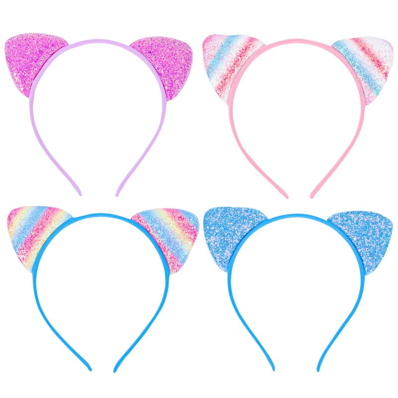 AMCAMI 4 Pcs Sequin Cat Ears Headband Birthday Girl Headband Cat Birthday Headdband Shiny Cat Ear Headband Cat Party Decorations Cat Party Favors Hair Accessories for Women