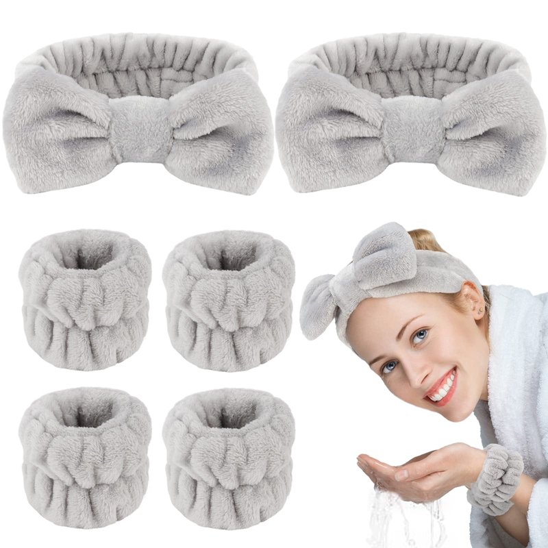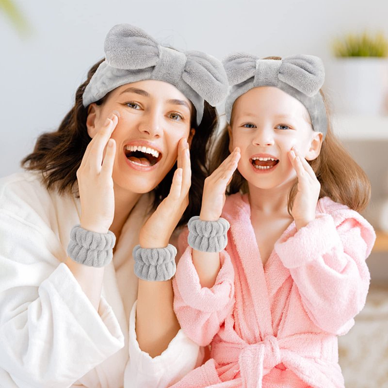 "【Spa Headbands & Wristbands Set】You will receive 2* shower headbands and 4* matching wristbands. A practical combination can meet your daily washing and replacement demands, you can also share it with your friends or families. 【Skincare Headband With Bow】Adorable bowtie is designed on the top of makeup headband, which makes you extraordinary sweet and cute. The fluffy headband works effectively to keep your hair during your cleansing process, providing comfort during your skin care routine. With nice elasticity to fit most people's head. 【Absorbent Wristband】Our towel wristbands for washing face are practical in daily use, preventing liquids from spreading down your arms, giving you snug enjoyment. 【Soft & Comfortable】The cosmetic hairband is made of microfiber fleece, double-layered high-quality coral velvet, extremely soft, cushy, adorable, intimate for your skin. 【Wide Occasions】The spa stuff for women are functional for washing face, makeup, mask routine, yoga, taking shower, birthday spa party and sleepover party. Also as Christmas stocking stuffers for girls, party favors for girls."