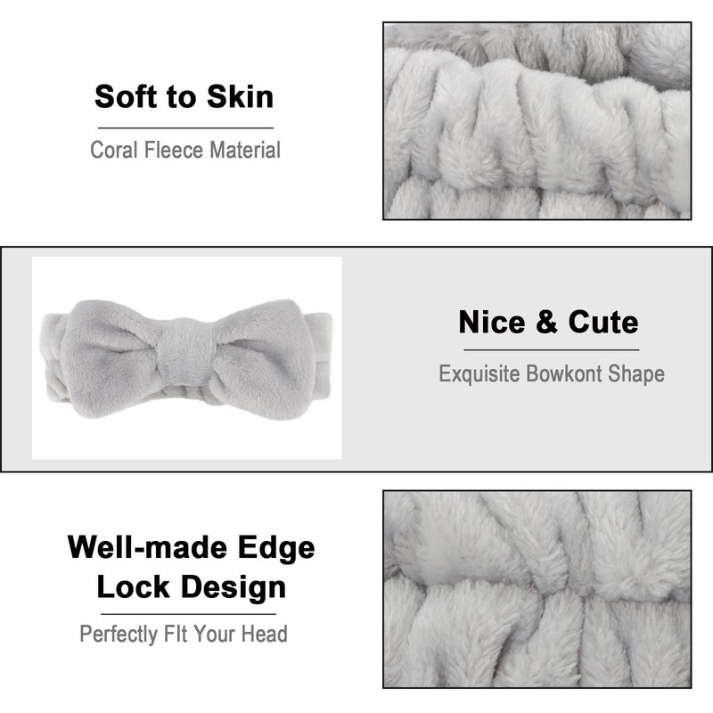 - [Skincare Headband With Bow] The adorable bowknot is designed on the top of the makeup headband, making you extra sweet and cute. The fluffy headband keeps your hair in place while you cleanse, providing comfort during your skin care routine. With enough elasticity to fit the majority of people's heads.