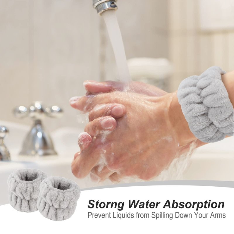 - [Absorbent Wristband] They're great for keeping water from spreading and spilling down your arms while washing, and a comfortable towel wristband prevents hair from falling in front of your face and provides a barrier to keep your hair dry while washing your face. Our towel wristbands for washing your face are useful in everyday life, preventing liquids from spreading down your arms and providing you with snug enjoyment.