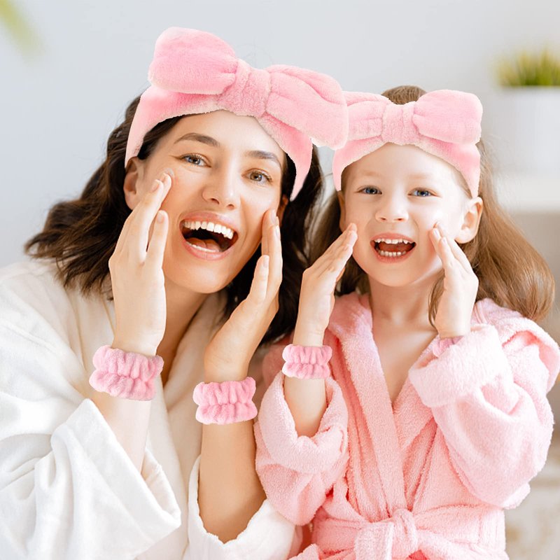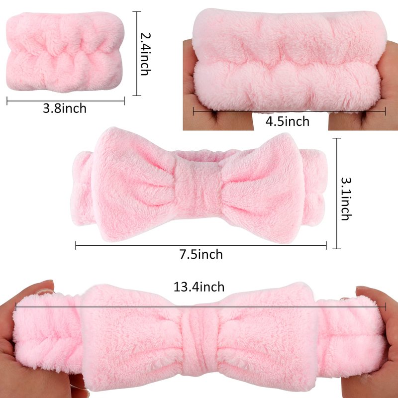 【Spa Headbands & Wristbands Set】You will receive 2* shower headbands and 4* matching wristbands. A practical combination can meet your daily washing and replacement demands, you can also share it with your friends or families. 【Skincare Headband With Bow】Adorable bowtie is designed on the top of headband, which makes you extraordinary sweet and cute. The fluffy headband works effectively to keep your hair during your cleansing process, providing comfort during your skin care routine. With nice elasticity to fit most people's head. 【Absorbent Wristband】Our towel wristbands for washing face are practical in daily use, preventing liquids from spreading down your arms, giving you snug enjoyment. 【Soft & Comfortable】The cosmetic hairband is made of microfiber fleece, double-layered high-quality coral velvet, extremely soft, cushy, adorable, intimate for your skin. 【Wide Occasions】The spa stuff for women are functional for washing face, makeup, mask routine, yoga, taking shower, birthday spa party and sleepover party. Also as Christmas stocking stuffers for girls, party favors for girls.