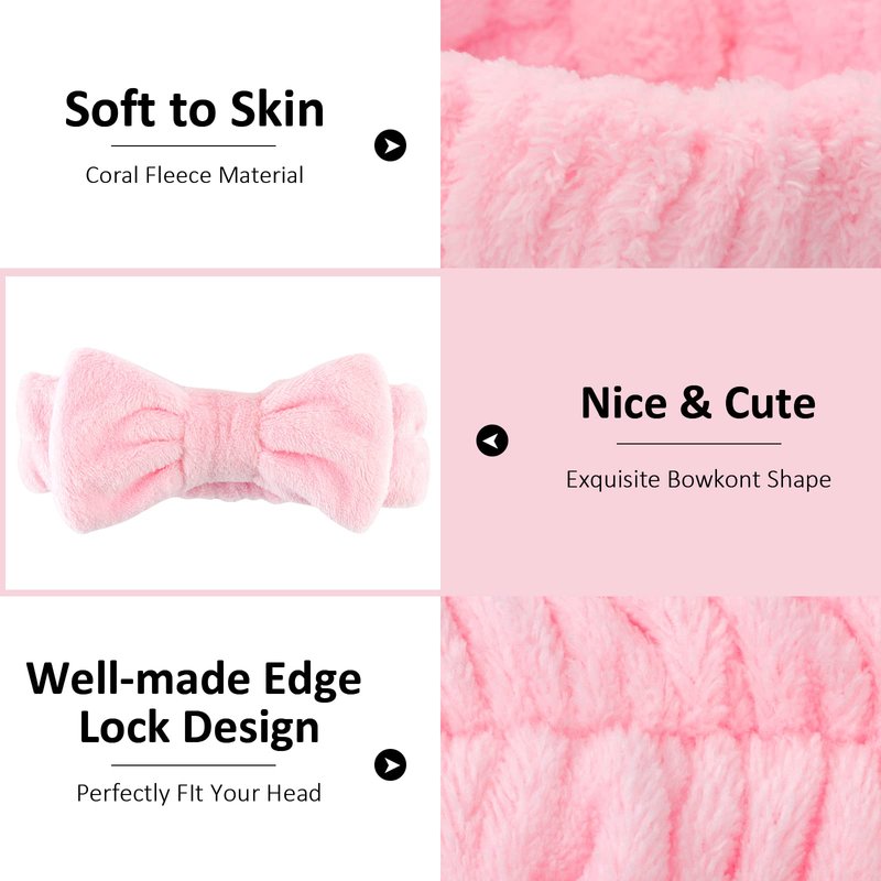 - [Skincare Headband With Bow] The adorable bow is designed on the top of the skin care headband, making you extra sweet and cute. The fluffy wash face headband keeps your hair in place while you cleanse, providing comfort during your skin care routine.