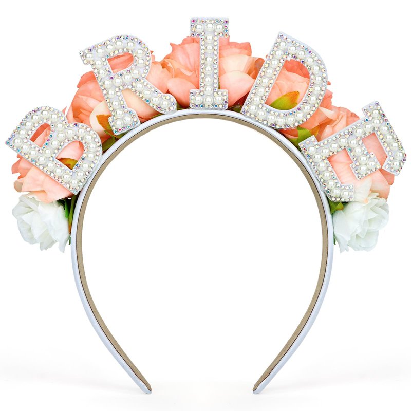 - Exquisite Pearl Bridal Headband: This headband is a handmade exquisite women bridal accessory, we creatively combine rose flowers and dazzling pearls,attached with the word bride made of smooth cloth,making the bridal headband more attractive and fashionable,compared with the typical bridal headband, its shape is very distinctive,exudes a natural charm,it is definetely an excellent bridal party decoration