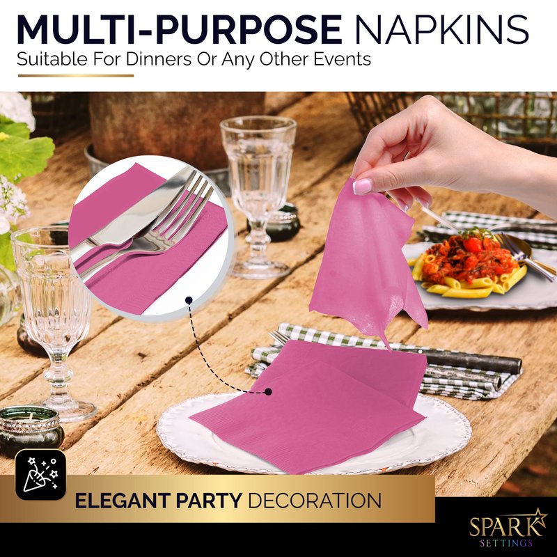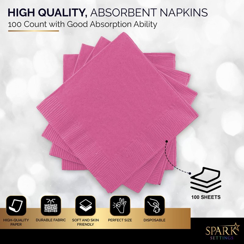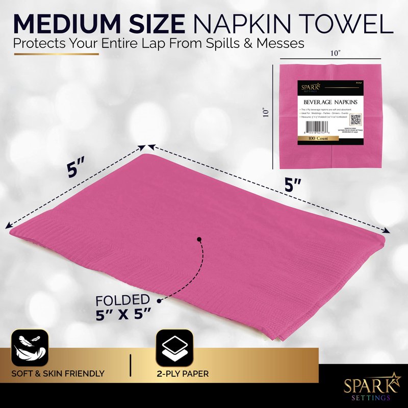 Amcrate Big Party Pack 100 Count Pink Beverage Napkins - Ideal for Wedding, Party, Birthday, Dinner, Lunch, Cocktails. (5” x 5”)