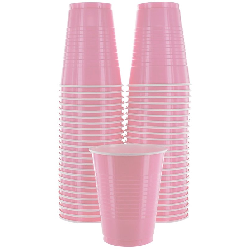 Amcrate Disposable Plastic Cups, Pink Colored Plastic Cups, 18-Ounce Plastic Party Cups, Strong and Sturdy Disposable Cups for Party, Wedding, Christmas, Halloween Party Cup, 50 Pack