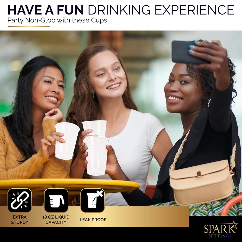 Get ready to host any casual dinner, family gathering, or kid’s party with these amazing disposable cups that can serve up to 50 people with the drink of their choice. Thanks to their super versatile 18 oz size, our plastic party cups are great for any cold beverage, juices, homemade lemonade, wine, and even your favorite cocktails. Thoroughly designed to be more sturdy, strong, and durable than your average single-use cups.