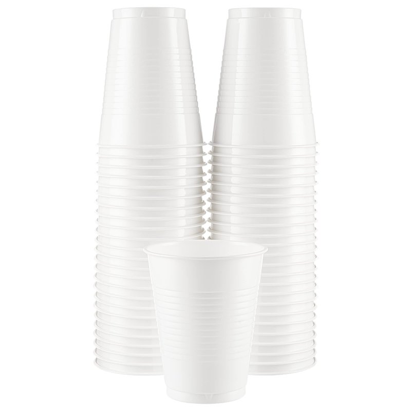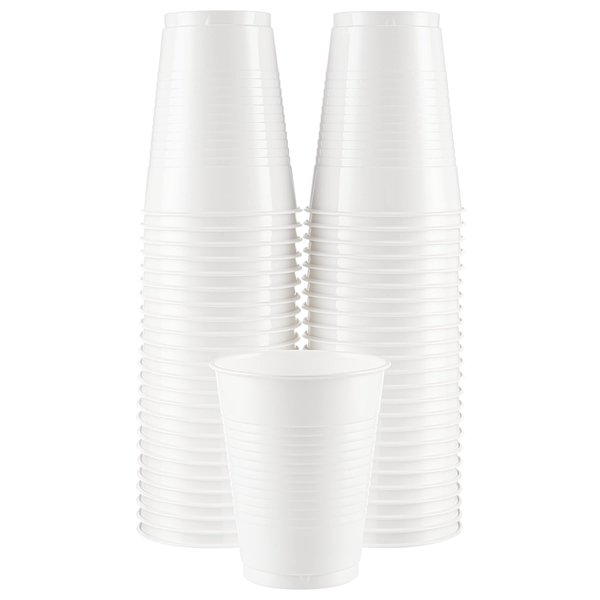 Amcrate Disposable Plastic Cups, White Colored Plastic Cups, 18-Ounce Plastic Party Cups, Strong and Sturdy Disposable Cups for Party, Wedding, Christmas, Halloween Party Cup, 50 Pack