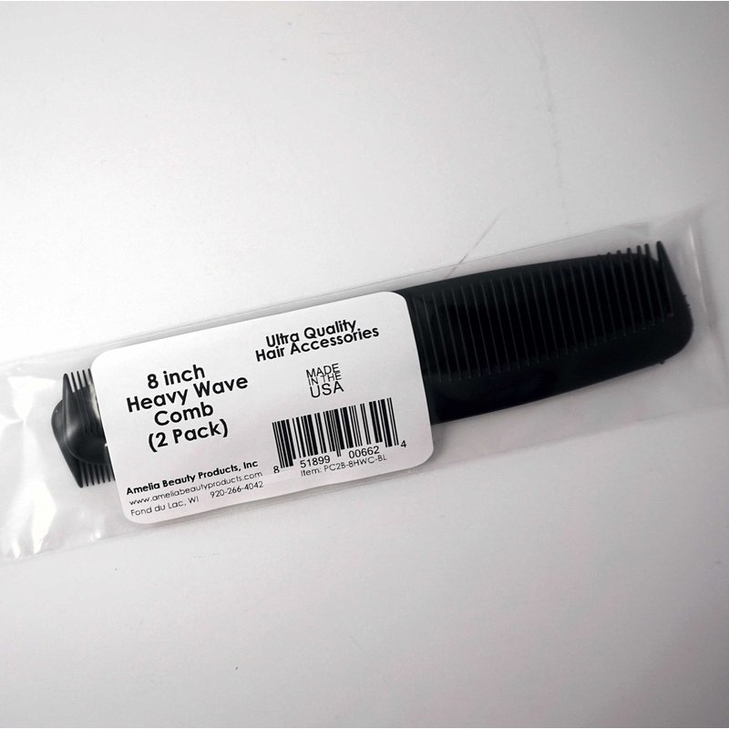 Amelia Beauty, 8in Black Plastic Master Wave Styling Comb, Made in USA, Professional Grade Hair Comb, For Everyday Styling, Thick Hair, Wet or Dry, l, 7"x1.25", 2 Pack