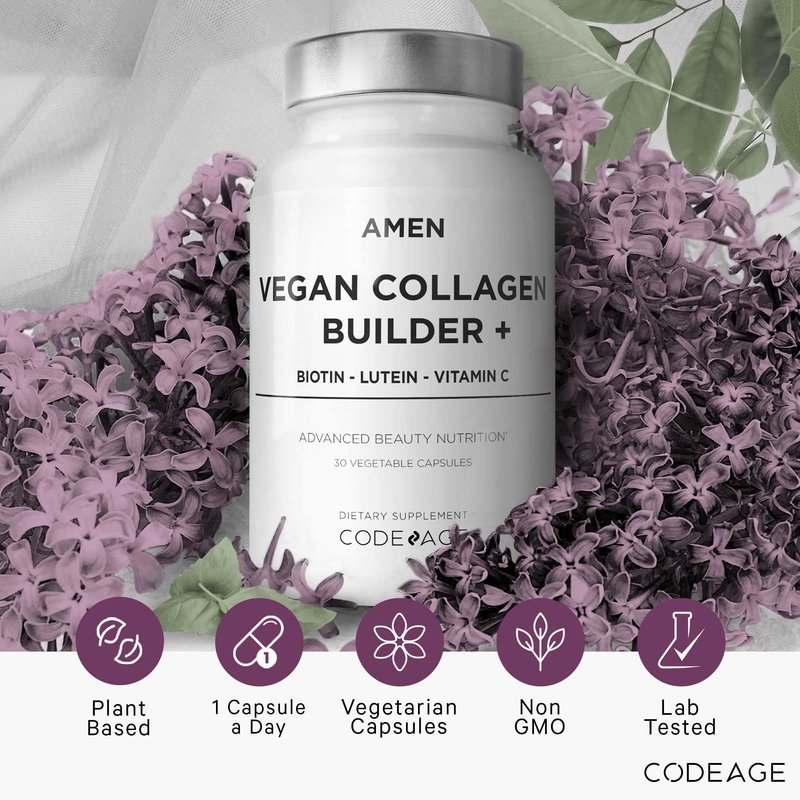 - Vegetarian / vegan collagen supplement: Amen Vegan Collagen Builder supplement provides plant-based nutritional sources, organic whole foods fruits, vitamin C and biotin in an all-in-one vegan collagen supplement. This vegan supplement doesn’t include collagen which needs to come from animal sources. This solution is formulated for both men and women.