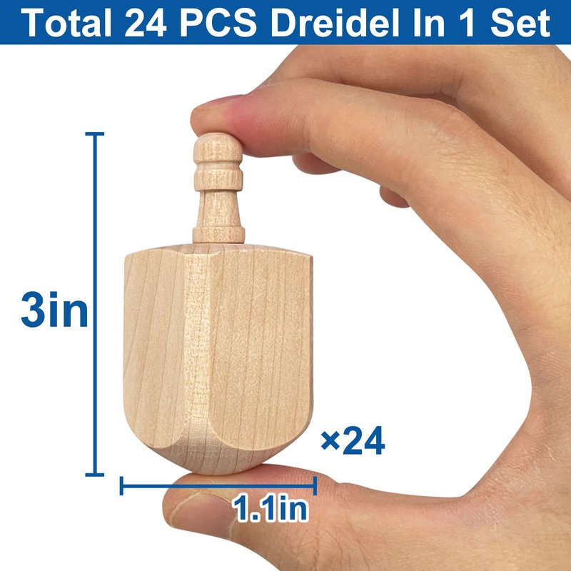 - [ 24 Pack Hanukkah Wooden Dreidel ] Package includes 24 Hanukkah wooden dreidel, each measures 3 inch height. They are enough for your DIY needs.
