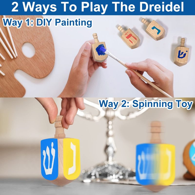 - [ 2 Ways to Use ] These Hanukkah wooden dreidel can be used for DIY creation, but also for as a spinning toy, it can rotate for a long time.