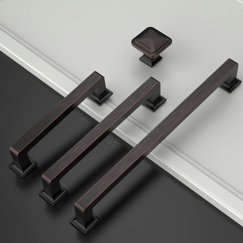 Amerdeco 10 Pack Oil Rubbed Bronze Square Kitchen Cabinet Knobs Cabinet Hardware Single Hole Cabinet Pulls Gold Drawer Knobs and Pulls for Bathroom Cabinets ZH0019