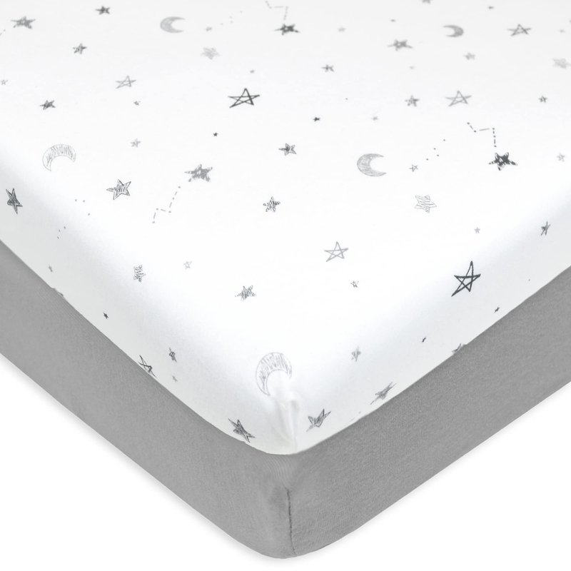 American Baby Company 2 Pack Fitted Mini Crib Sheet 24" x 38", Soft Breathable Neutral 100% Cotton Jersey Portable Sheet, Gray Stars and Gray, for Boys and Girls, Fits Most Pack N Play Mattresses