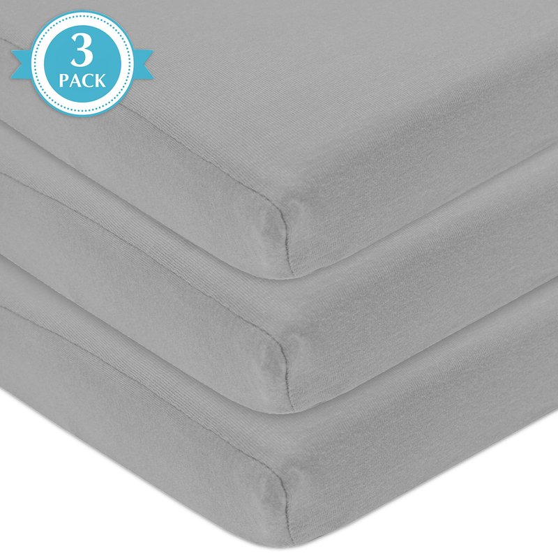 American Baby Company 3 Pack Fitted Mini Crib Sheet 24" x 38", Soft Breathable Neutral 100% Cotton Jersey Portable Sheet, Gray, for Boys and Girls, Fits Most Pack N Play Mattresses