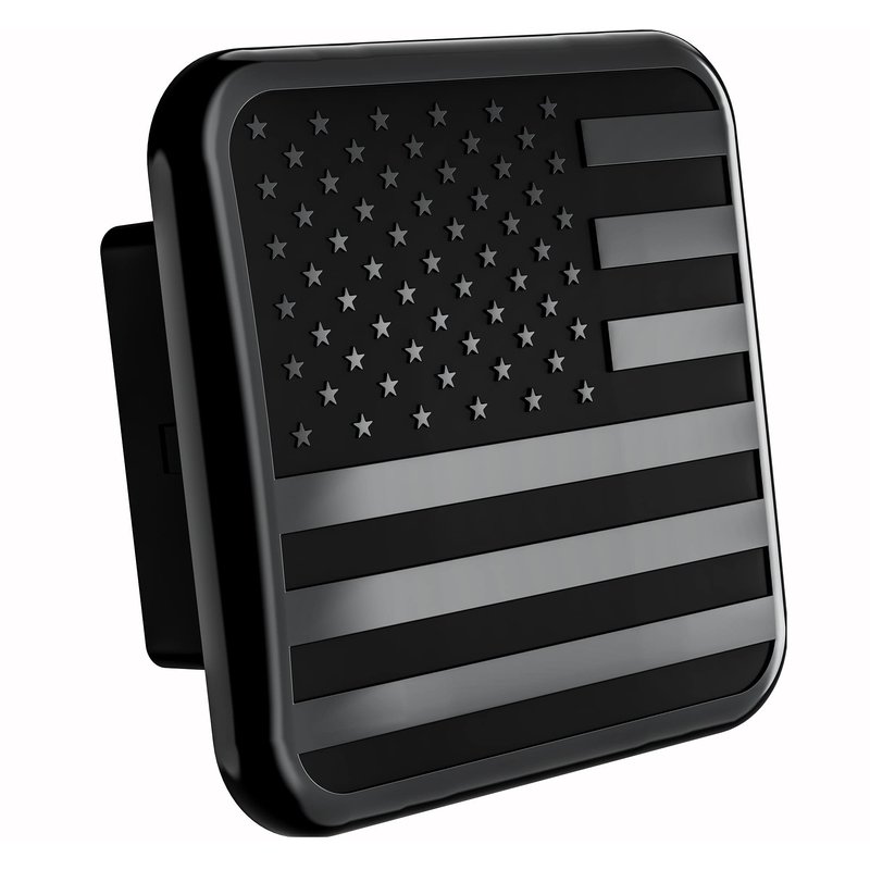 American Black Metal Flag Trailer Hitch Cover - Patriotic Flag Plug (Black, Fits 2'' Receivers)