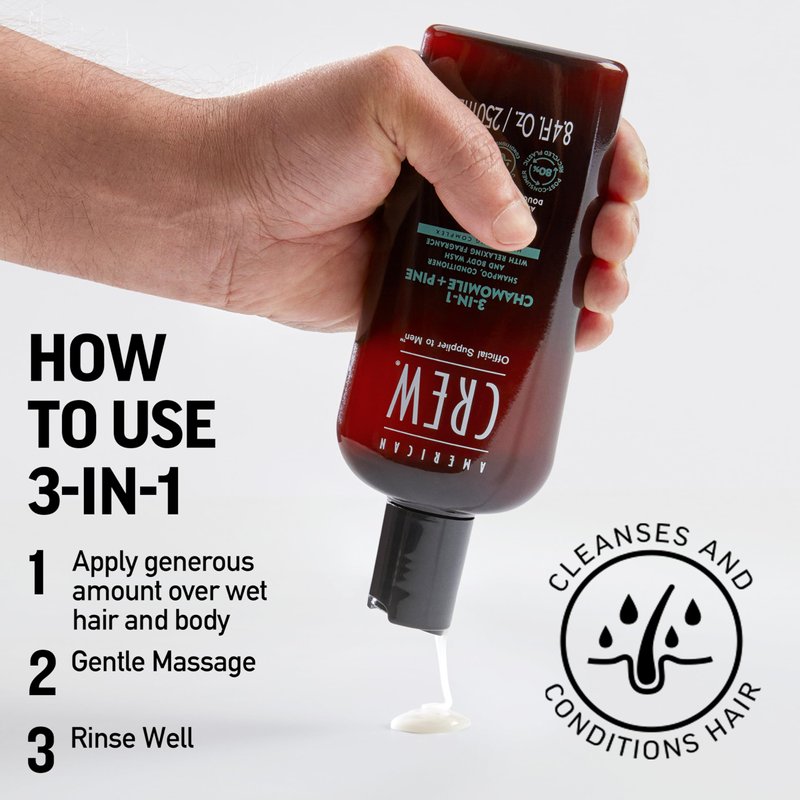 American Crew 3-IN-1 CHAMOMILE + PINE Shampoo, Conditioner and Body Wash, 15.2 Fl Oz (Pack of 1)