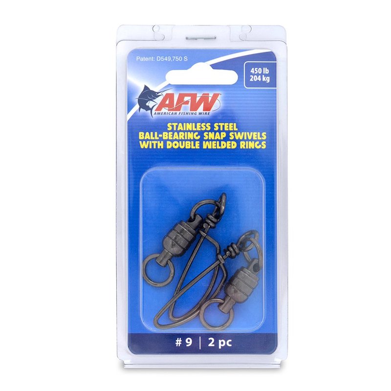 American Fishing Wire 9 Stainless Steel Ball Bearing Snap/Swivels (2-Piece), Black, 450-Pound