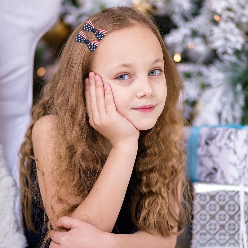 - 【American Flag Hair Bow Package】- Including 2pcs x American flag hair bow clips for toddler baby girls, classic color can meet your different hair style needs. You can also share them with your family and friends.