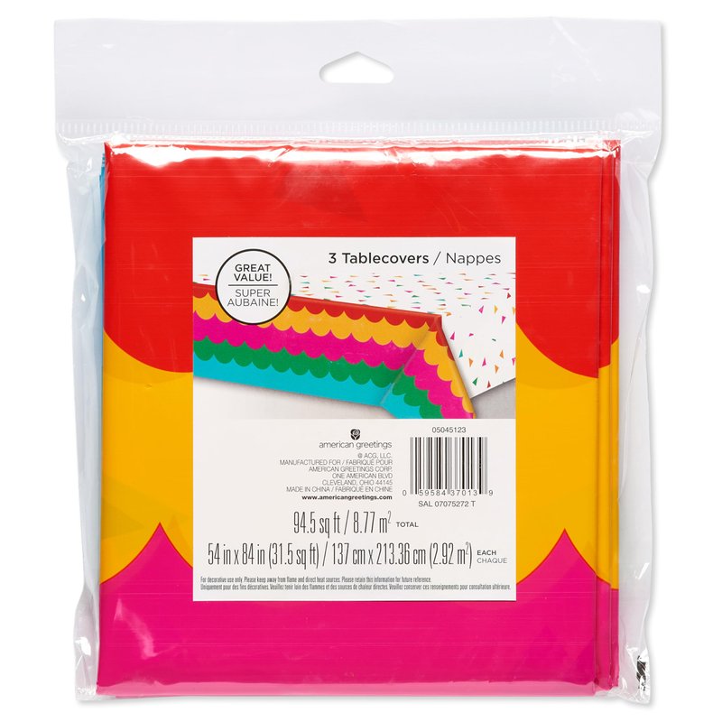 American Greetings 3-Count # sq. ft. Plastic Table Covers, Fiesta Party Supplies (54 in. x 84 in.)