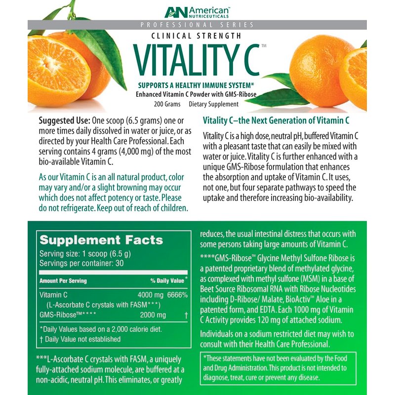 American Nutriceuticals Vitamin C Powder - Supplement for Immune Support - Natural, Sugar Free -Non-Acidic - No Upset Stomach - 4000mg