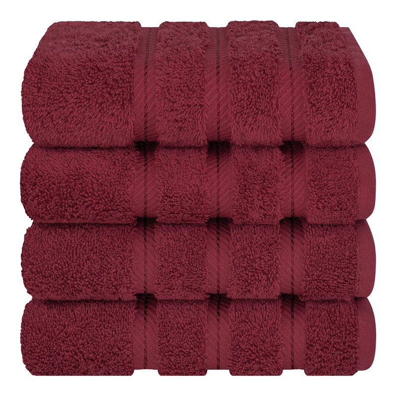 Introducing the epitome of luxury and functionality for your bathroom essentials - our Turkish Cotton Hand Towel Set! Elevate your everyday routine with this exquisite set crafted from premium Turkish cotton, renowned for its unparalleled softness and absorbency. Each set includes 4 generously sized hand towels and 6 indulgent bath washcloths, offering you and your family ample options for daily use. Whether it's drying your face, hands, or body after a soothing shower or bath, these towels provide the perfect blend of comfort and functionality. Our hand towels are designed to pamper your skin with their plush and fluffy texture, making every touch a moment of pure luxury. The quick-dry feature ensures that they are always ready for use, ideal for busy households, gyms, spas, or hotels. Not limited to just the bathroom, these versatile towels are also perfect for the kitchen, as dish towels, or even for makeup removal. Their thick and absorbent nature makes them an essential companion for any task. Crafted with care, these towels are gentle enough for baby's delicate skin yet durable enough for everyday use. Treat yourself or surprise a loved one with this luxurious set, perfect for housewarming gifts, bridal showers, or any special occasion. Experience the unparalleled comfort and luxury of our Turkish Cotton Hand Towel Set - your ultimate companion for a pampering experience, every day. turkish cotton bordeaux red hand towels for bathroom