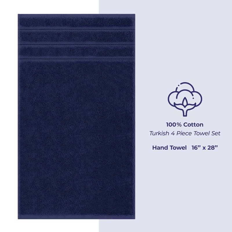 American Soft Linen Luxury Hand Towels for Bathroom, 100% Cotton Turkish 4 Piece Hand Towel Set, 600 GSM Hand Face Towels for Kitchen, Navy Blue Hand Towels