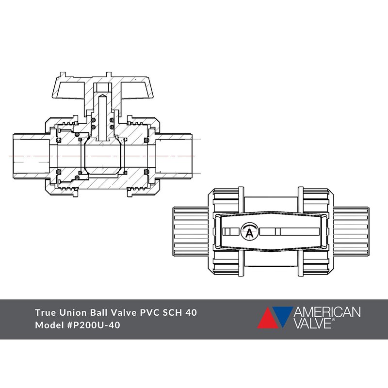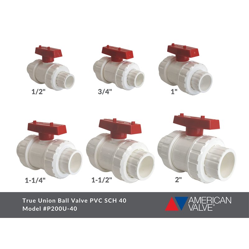 American Valve P200U-40 1" PVC True Union Ball Valve, 1-Inch